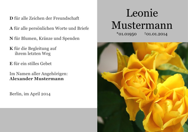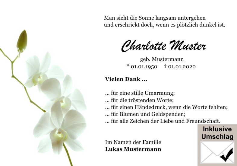 Trauer Danksagungen, Trauerkarten und Danksagungskarten im Trauerfall, nach Todesfall, bei Sterbefall, zur Beerdigung